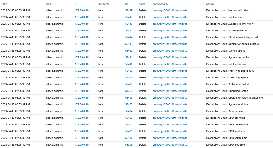 When modifying a host taking it out of a hostgroup, the auditlog report a HostGroup modification, but the data reports only the id of the relationship (the id of the record that used to have the Hostgroup id and host id), so you don“t know the host that not longer belong to that Hostgroup.
