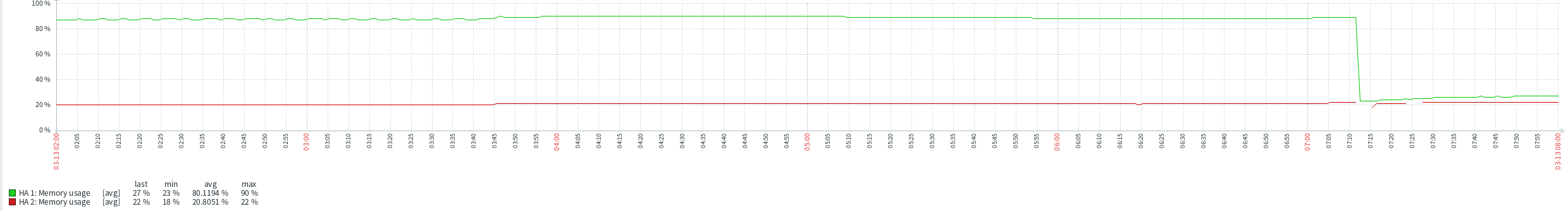 The firewall here went into conserve mode at around 2:05