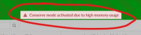 A trigger should fire as soon as the firewalls memory usage goes over 70% - it should never go into conserve mode at all.