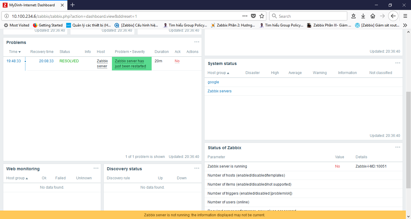I install Zabbix 3.4.7 on centos 7 64bit. After config, I login web show error "zabbix server is not running the information may not be current"