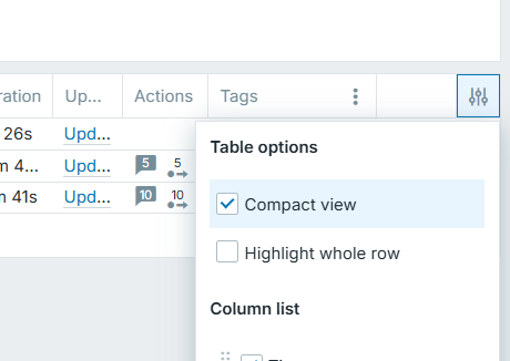 Tables with configurable columns
