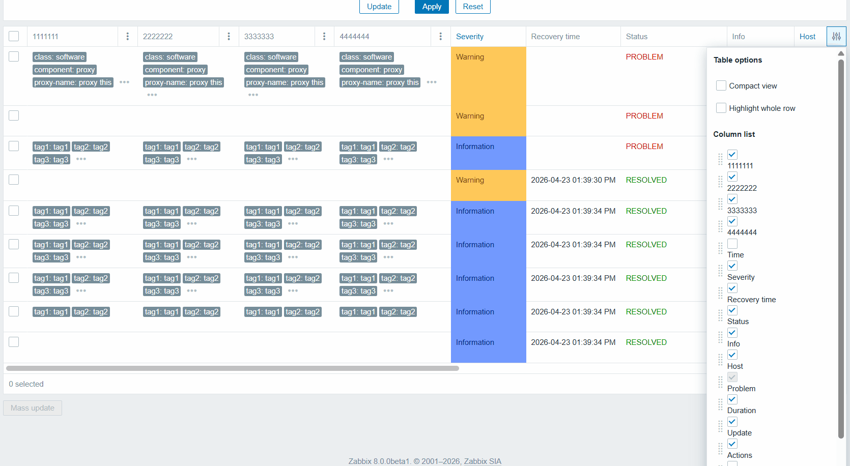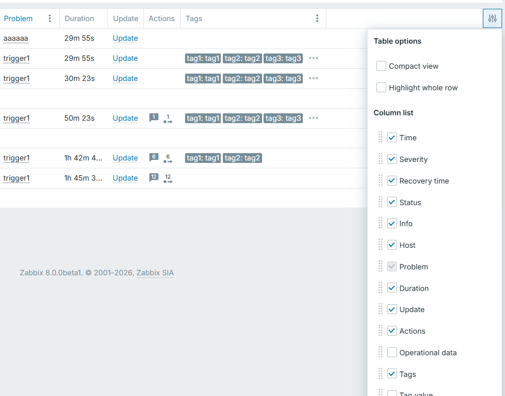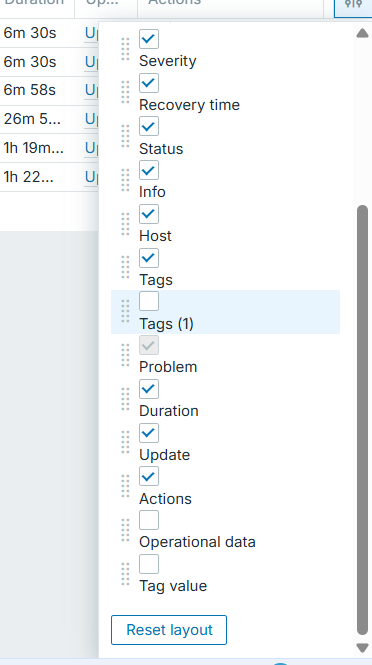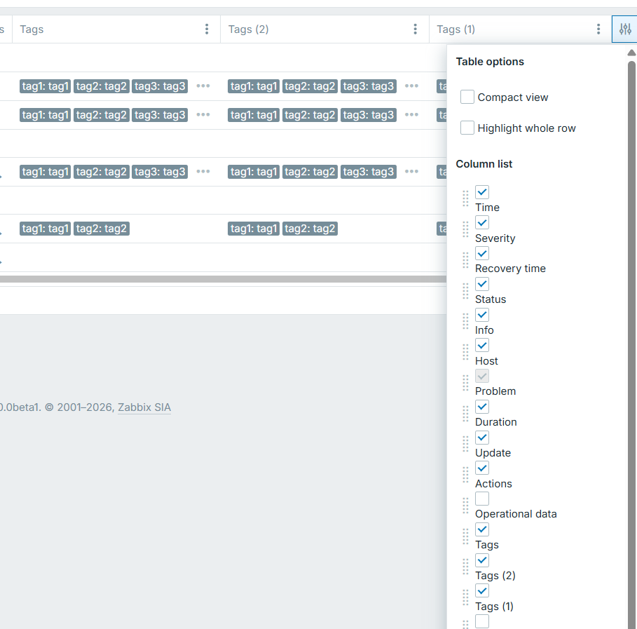 • Functionality to select with checkboxes which columns to display in the output of the page. As example in the Monitoring-Problems users may not want to fill the screen space with