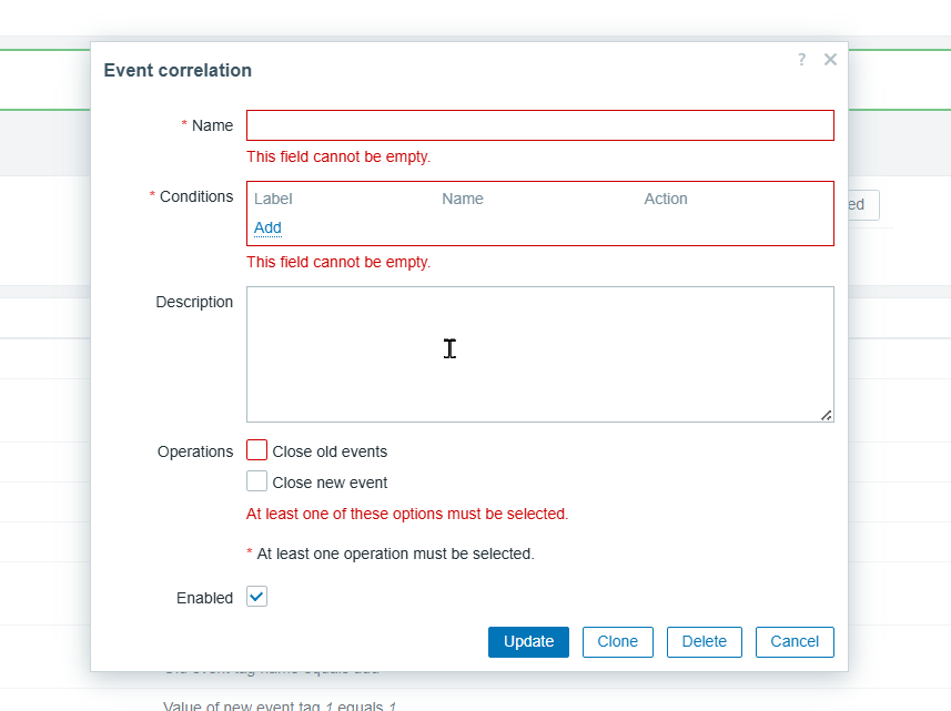 Introduce inline form validation - Event correlation form
