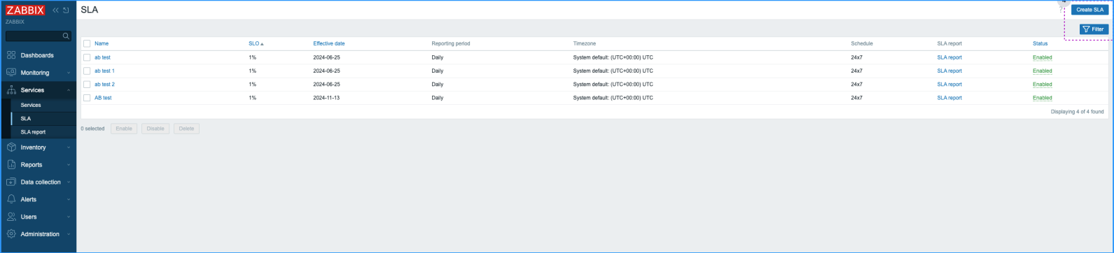 1. Open the Services/SLA