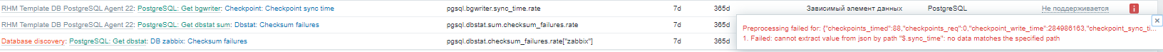 a.yagupov could you try updating agent and updating template to the latest version from git? https://git.zabbix.com/projects/ZBX/repos/zabbix/browse/templates/db/postgresql_agent2/template_db_postgresql_agent2.xml?at=refs%2Fheads%2Frelease%2F5.0 |