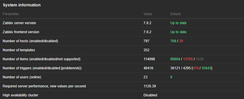 I use 7.0.8. I will analyze diaginfo and will try to find item which when disabled, the memory is stabilized. Can anyone here who uses zabbix confirm that you use VMware monitoring also? | ||||||||||||||||||||||||||||||