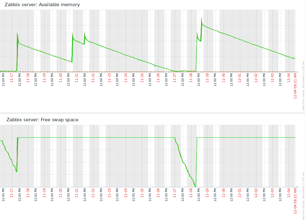 Could you please run the following commands on a long running server and share the output: ps -eo size,pid,user,command --sort -size | grep zabbix_server cat /proc/meminfo free -m What types of items are you using for monitoring? | ||||||||||||||||||||||||||||||