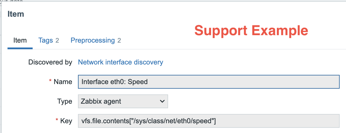Indeed, in all of my VM's with "VirtIO (paravirtualized)" interface it also shows an error in Zabbix. But that's not the Zabbix fault, the `cat` of network interface speed with response '-1' simply means "Unsupported".