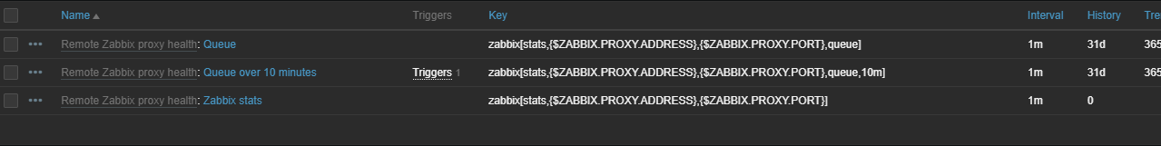Usually the "status" item (as in "status.last(0)=...) is handled correctly if a system is monitored directly. But a system behind a proxy is shown as "unreachable" all the time. A possible workaround is to change the trigger from status.last(0)=2 to agent.ping=0 I had rather expected that the 'status' parameter shows that a system is reachable - even when being located behind a proxy. |